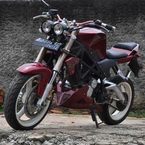 "Tangkinya terinspirasi dari GSX 600, sedangkan bodi bagian belakang diilhami dari Ducati Street Fighter yang kemudian dipadukan dengan delta box bergaya tubular ala Ducati 696," cetusnya.