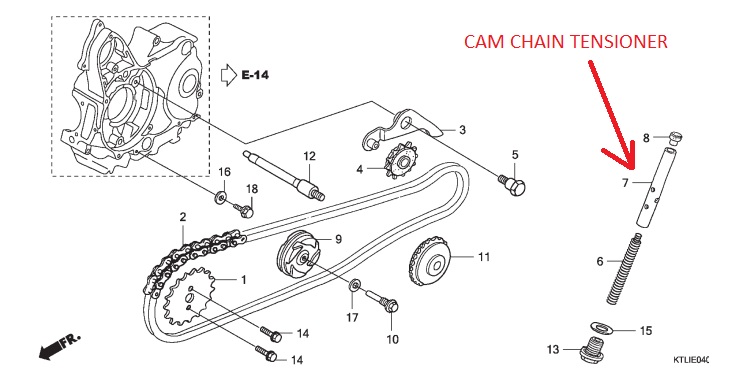 Cara kerja komponen ini seperti katup yang digerakkan keatas oleh sebuah per dan oli mesin yang fungsinya membuat rantai keteng lebih tegang/kencang.