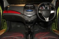 Itu baru bagian luarnya. Coba masuk ke dalam kabin, isi bagian dalam mobil yang memiliki arti 'percikan api' ini terasa sangat atraktif dengan permainan pola pada bagian dashboard dan jok. Pada bagian dashboard, Chevrolet memanfaatkannya untuk membuat cekungan yang akhirnya bisa dipergunakan sebagai wadah yang kemudian diberi kelir merah.