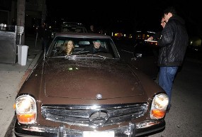 Mercedes 230SL Roadster lansiran tahun 1965 yang digunakan bintang Hollywood ini tertangkap kamera sedang digunakan John Travolta ketika dirinya kedapatan selesai makan malam dengan sang istri, Kelly Preston.