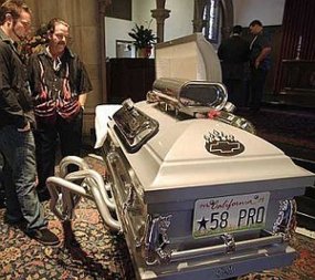 Dan untuk model model terkini, sebuah peti mati berbentuk Ford Focus lengkap bertulisankan World Rally Team Focus (WRC) yang spektakuler. Dengan konsep tersebut, paling tidak pelayat pun tidak merasa seram.
