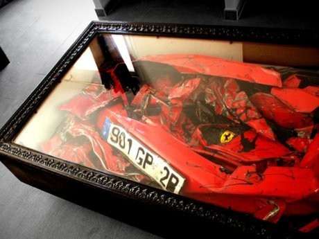 2. Hiasan meja dari Ferrari bekas tabrakan
