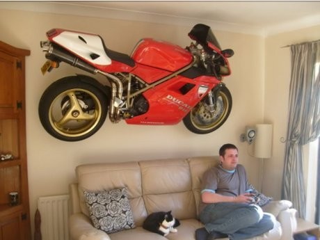 Anda harus memastikan ukuran dinding untuk menggantung motor tersebut, pasalnya ukurannya cukup besar.