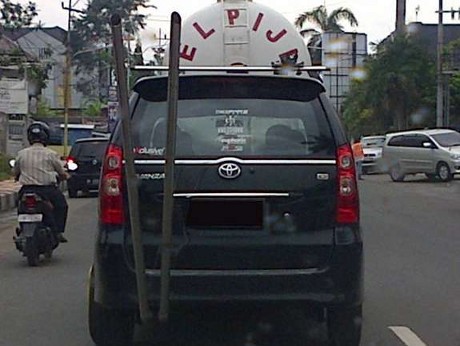 Mobil Avanza ini mencoba melindungi dirinya dari banjir dengan memasang pipa knalpot super panjang.