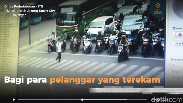 "Dinas Perhubungan Pemprov DKI Jakarta telah memiliki fasilitas yang dapat meningkatkan ketertiban lalu lintas di Jakarta. Petugas yang memantau lalu lintas melalui CCTV, dapat menegur secara tidak langsung para pelanggar lalu lintas yang berhenti melewati marka garis stop. Petugas pun akan meminta para pelanggar tersebut untuk memundurkan kendaraannya hingga ke posisi yang benar," demikian caption video tersebut.