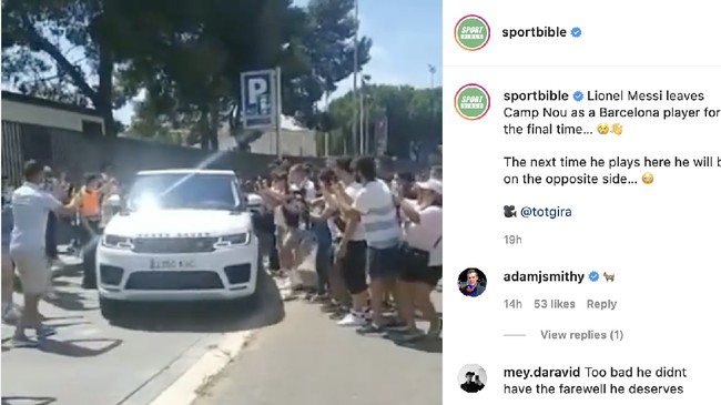 "Lionel Messi meninggalkan Camp Nou sebagai pemain Barcelona untuk terakhir kalinya. Ketika dia bermain di sana, dia akan berada di tim lawan," tulis akun @sportbible dalam unggahannya.