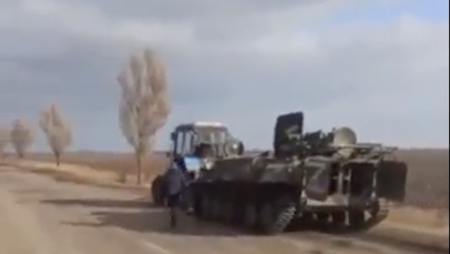 Ukrainian tractor steals Russian APC today 👇 pic.twitter.com/exutLiJc5v