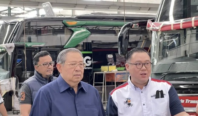 Mantan Presiden RI, Susilo Bambang Yudhoyono (SBY) berkunjung ke salah satu karoseri terbesar di Tanah Air, Adiputro. Politisi Partai Demokrat itu sempat melihat beberapa model bodi bus buatan Adiputro. Mau beli bus baru nih pak?