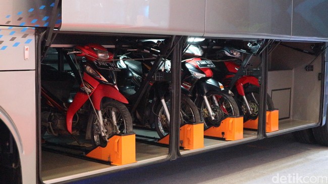 Zaman dulu sepeda motor hanya bisa diangkut oleh truk atau kereta api. Tapi sekarang, kendaraan roda dua favorit masyarakat Indonesia itu juga bisa diangkut di bagasi bus. Sehingga masyarakat yang ingin pulang ke kampung halaman, bisa serta merta membawa motor kesayangannya. Kok bisa ya motor masuk dalam bagasi bus?