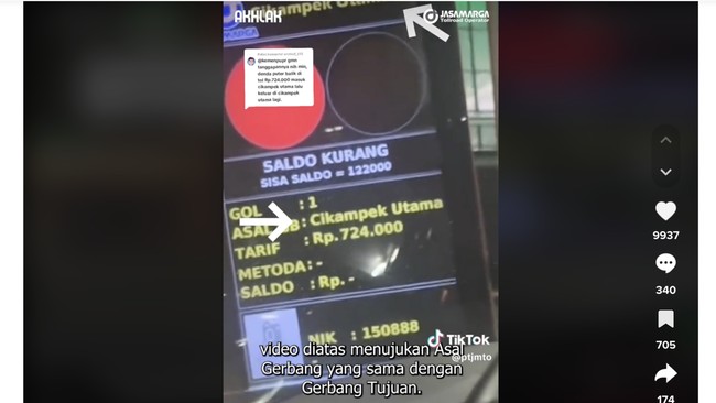 Mereka pun masuk ke Gerbang Tol Cikampek dan kaget ketika melihat tulisan tarif di papan informasi menunjukkan angka Rp 724 ribu. "Kita masuk ke gerbang tol Cikampek itu, dan kok 724 ribu? Ya udah kita panggil petugasnya, kita tanya kenapa kok bayarnya bisa semahal ini?" katanya lagi.