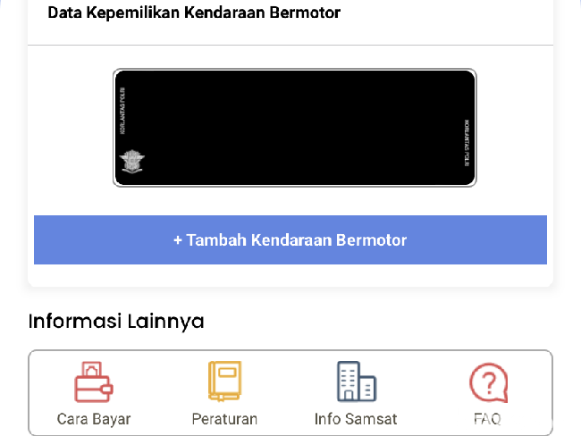 - Jika kamu ingin melakukan pembayaran untuk kendaraan milik orang lain, klik tombol tambah untuk menambahkan data kendaraan dokumen digital di aplikasi SIGNAL.