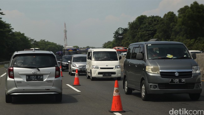 Detail contraflow di jalan tol menuju timur dari Jakarta: