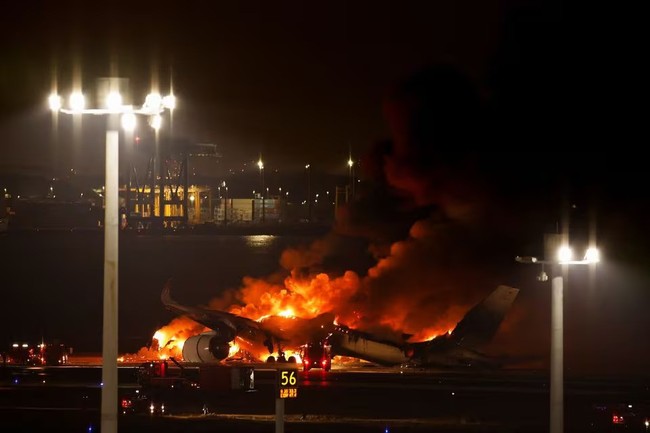Rekaman dalam siaran NHK menunjukkan api keluar dari jendela pesawat dan di bawahnya. Pesawat yang lepas landas dari Sapporo itu bertabrakan dengan sebuah pesawat penjaga pantai. Semua penumpang dan awak pesawat yang berjumlah 379 telah dievakuasi dari dalam pesawat.