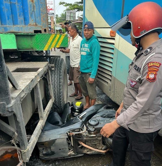"Jadi pada saat itu masih banyak kendaraan di belakang bus, kami juga kalau pakai tangan ganjal bus tersebut juga kami bakal jadi geprek pasti. Nah jadi kami ambil inisiatif kami ambillah motor itu kami ganjal ke belakang bus itu. Dan alhamdulillahnya bus tersebut dapat berhenti," ujarnya.