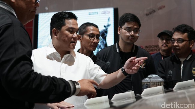 Menteri BUMN Erick Thohir menyambangi pameran otomotif Indonesia International Motor Show (IIMS) 2024 di JIExpo Kemayoran pada Minggu (18/2/24).