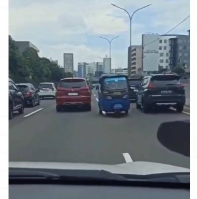 Viral di media sosial video bajaj tengah lawan arah di jalan tol Jakarta-Tangerang. Bajaj itu nekat menerobos tol sembari membawa penumpang di kursi belakang.