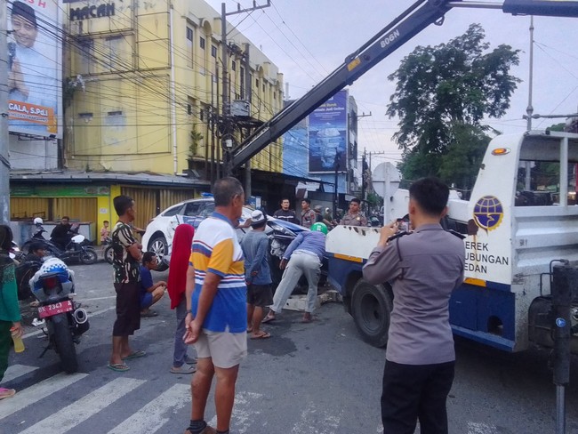 "Ditabrak dari samping di perempatan itu, yang nabrak itu posisinya kencang. Mobil kita dari simpang Waspada ke arah Kampung Baru, yang (mobil) satu lagi dari arah Polonia mau ke SM Raja," jelas Andika dikutip detikSumut.
