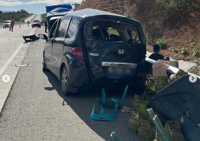Polisi mengungkap fakta baru soal kecelakaan Honda Freed 'maut' yang pecah ban dan menghantam Mitsubishi L300 di Tol Indrapuri Km 38, Kabupaten Aceh Besar. Menurut mereka, Honda Freed tersebut mengangkut 38 tabung elpiji dengan ukuran 3 kilogram!