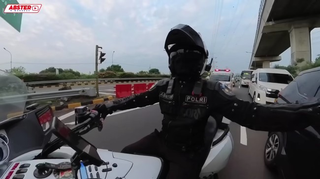 "Terus belum lagi kita main sirene seperti apa. Harus ngarahin kendaraan lain, belajar ngegas pakai tangan kiri karena apa, tangan kanan buat ngarahin kendaraan yang dari sebelah kanan. Jadi kecepatan motor harus tetap dijaga, tapi juga kita harus juga nuntun masyarakat yang lain untuk memberikan prioritas terhadap kendaraan yang kawal," lanjut Abster.