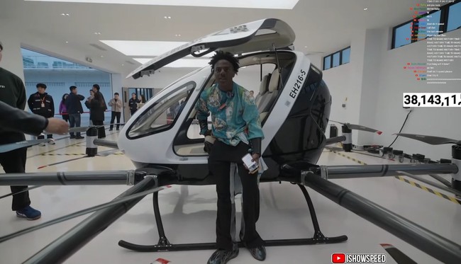 Mulanya iShowSpeed memang ketakutan naik mobil terbang tersebut. Namun, perwakilan EHang menjelaskan, kendaraan itu punya 16 propellers yang dirancang dengan keamanan tinggi. Selain itu, ada tiga sistem yang bergerak otomatis. Sehingga, saat satu sistem gagal, ada dua sistem lain yang mem-backup-nya.