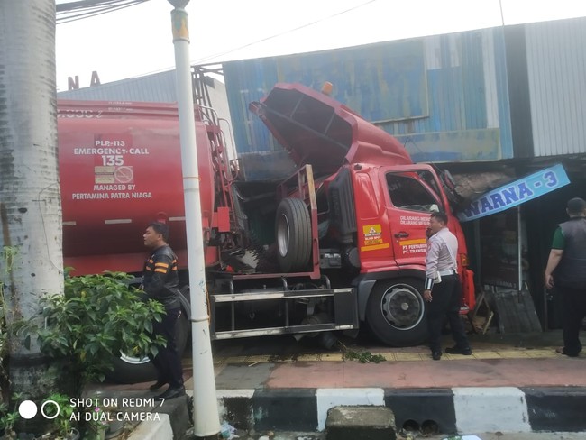 Akibatnya, truk tangki BBM Pertamina yang dikemudikan PK menabrak tiga unit ruko yang ada di sebelah kiri jalan. Dia menjelaskan, akibat kejadian itu, truk dan tiga ruko mengalami kerusakan.