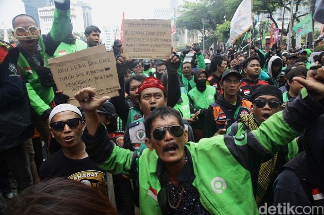 Sebagai catatan, gabungan ojol se-Indonesia telah berulang kali menggelar aksi massa di kota-kota besar. Tuntutannya masih sama, yakni pengurangan potongan aplikasi, payung hukum untuk mitra dan menindak aplikator-aplikator nakal.