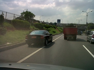 Terlihat jelas jika mobil yang ditumpanginya itu melintasi bahu tol seenaknya saja tanpa menghiraukan larangan menggunakan bahu tol yang selama ini didengungkan oleh pihak Jasa Marga dengan alasan keselamatan.