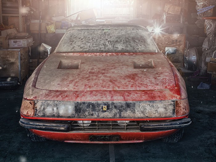 Berbeda dengan yang terjadi di Jepang. Ferrari Daytona justru ditemukan di gudang setelah hampir empat dekade terparkir disana.