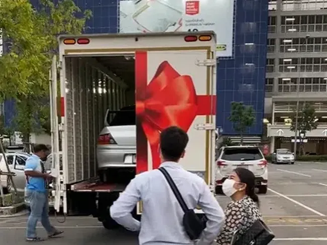 Dari postingan media sosial yang ramai dishare banyak orang, terlihat serangkaian foto ketika sang wanita memberi kejutan hadiah mobil untuk kekasihnya. Disebutkan kalau momen romantis itu terjadi di area parkir Megabangna Shopping Center, Samut Prakan, Thailand.