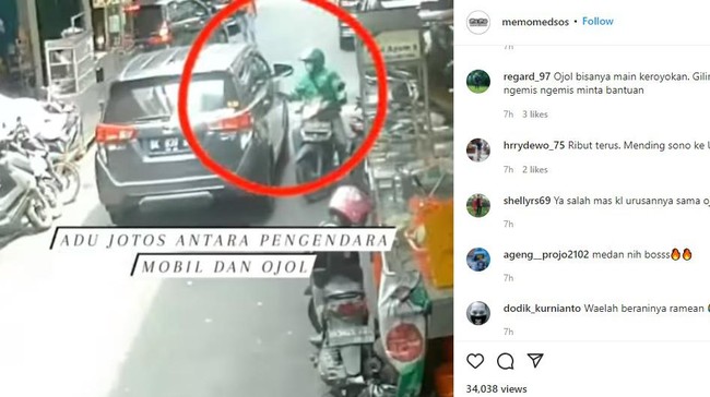 "Kalau liat cctv itu..ojolnya yg mukul duluan yg salah. Trs mgkin teman² yg lain terprovokasi. Yaaa..paling ntar jg minta maaf klarifikasi.. Biasalah.," komen @pug***