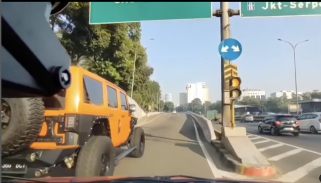 Aksi pengendara Jeep Rubicon di tol JORR menuai sorotan. Bagi yang belum tahu, dalam rekaman video dashcam sebagaimana diunggah akun instagram @dashcam_owners_indonesia, terlihat Jeep Rubicon berwarna oranye tiba-tiba muncul dari sisi kiri dan menyerempet kendaraan yang berada di jalur satu saat hendak mengambil pintu keluar di Mampang.