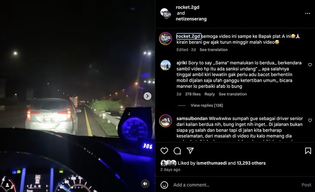 Namun, dalam cekcok adu mulut itu, pengendara Sigra menganggap dirinya benar dengan melaju sesuai batas kecepatan maksimal di jalan tol 80 km/jam.