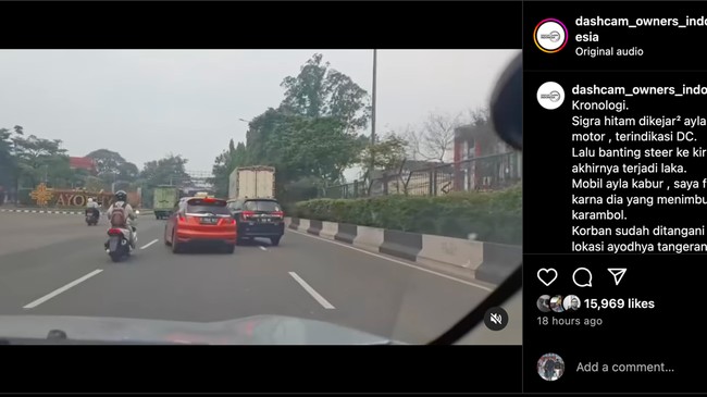 Video viral itu diunggah akun dashcam_owners_indonesia. Dalam video yang beredar tersebut, tampak Daihatsu Sigra berkelir hitam mengemudi dengan liar. Tiba-tiba dia berbelok ke kiri, sementara di lajur kirinya terdapat mobil lain, yaitu Honda Jazz berwarna oranye.