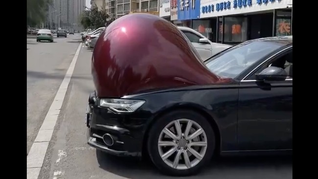 Media sosial dihebohkan mobil 'hamil' di China. Muncul benjolan berukuran besar hingga memenuhi area kap mesin.