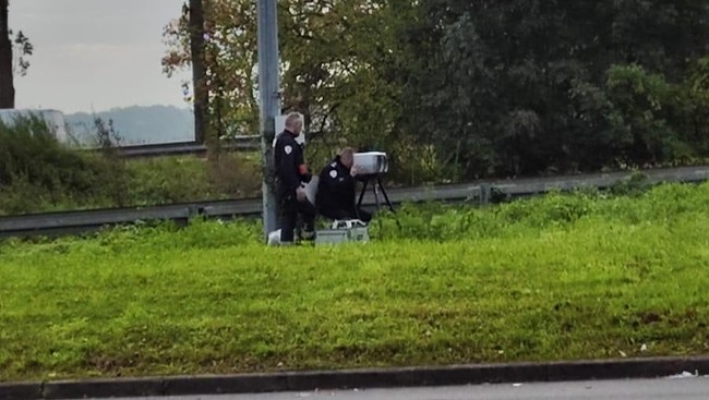Akan tetapi tidak disangka, petugas kepolisian tersebut malah 'bersembunyi' di-semak-semak dan di balik pepohonan, serta menembakkan layaknya alat speed gun untuk mengetahui seberapa cepat mobil pengendara melaju. Tentu ini menjadi pemandangan yang tidak biasa.