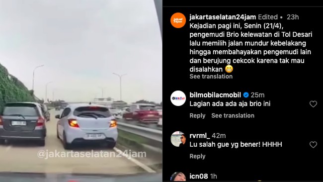 Aksi pengendara Brio yang memundurkan mobilnya di pintu keluar tol Andara/Pondok Labu/Ciganjur menuai sorotan. Aksi tersebut pun terekam kamera dashboard dan tersebar di media sosial.