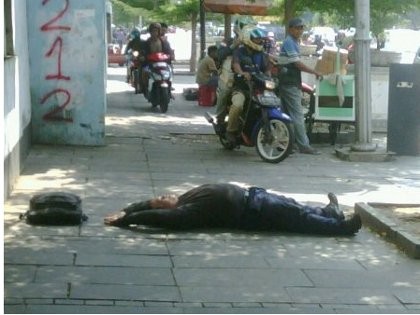 Mengusir Pemotor dari Trotoar dengan Telentang di Jalan