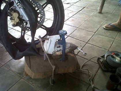 "Kreativitas seorang tukang tambal ban yang memiliki kekurangan fisik, memakai setrika pakaian sebagai pemanas dalam proses tambal ban," ujar Nardi, Otolovers pengirim foto Street Shot ini dalam surat elektronik yang dikirimkan ke detikOto, Senin (8/10/2012).
