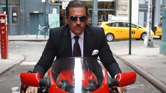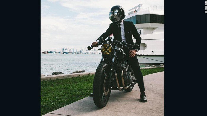 Dia baru-baru ini mencoba Suzuki GS550, sambil mengenakan busana Tom Ford dan jam tangan Patek Philippe Calatrava 3445 tahun 1971. Tampilannya mirip James Bond.