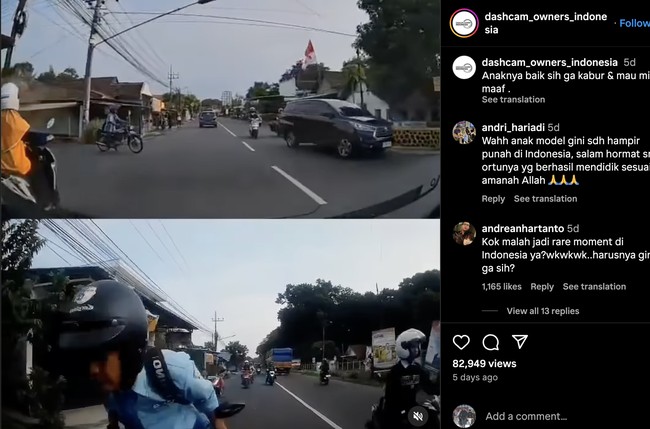 "Anaknya baik sih ga kabur & mau minta maaf," tulis akun @dashcam_owners_indonesia.