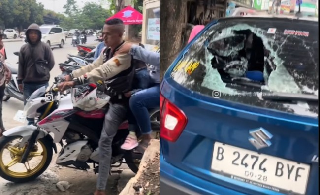 "Pengendara motor diduga lawan arah di Cengkareng, Jakbar. Saat kesenggol mobil, pengendara motor itu tidak terima hingga memecahkan kaca bagasi mobil," demikian tulis akun tersebut, dikutip Selasa (4/2).