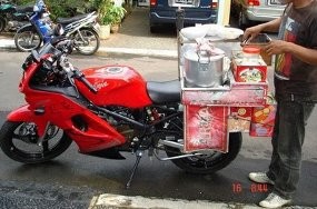 Heboh, Tukang Bubur Jualan Pakai Motor Ninja