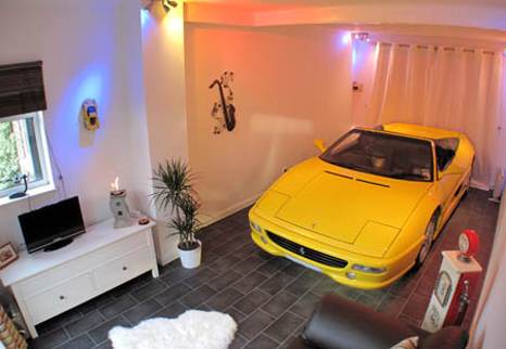 Untuk memasukkan Ferrari berkelir kuning ini, Ryder bersusah payah untuk mengubah ruang tamunya hingga memiliki sebuah bagian yang bisa menjadi pintu garasi.