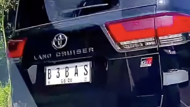 Viral mobil SUV mewah Land Cruiser lewat bahu jalan. Tambah ugal-ugalan lagi, pelat dengan nomor "B-3-BAS" itu juga menggunakan lampu strobo.