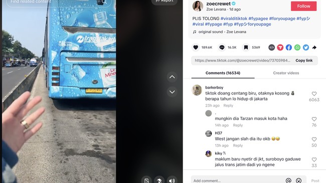 Viral selebgram Zoe Levana terjebak di jalur TransJakarta atau busway. Padahal busway itu hanya boleh digunakan untuk bus TransJakarta, dan wajib steril dari kendaraan lain.