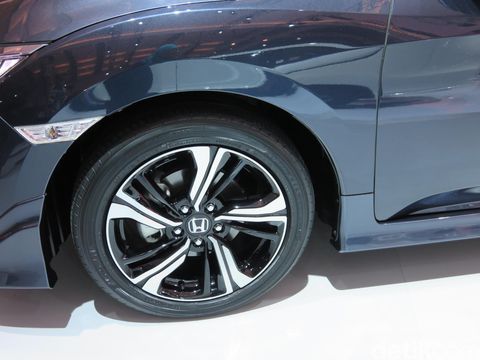 Pelek pada generasi ke-10 Honda Civic ini menggunakan ukuran 17 inci dengan desain racing dan material yang ringan.