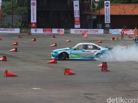 Sementara itu di bagian luar pameran, pengunjung mulai memadati arena Drift War dimana para drifter siang ini tengah melakukan latihan menjelang kualifikasi.