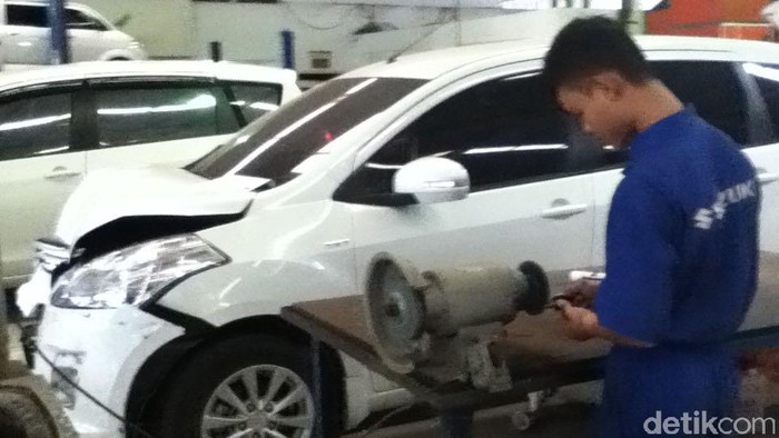 "Kami memiliki beberapa alat untuk biesa mendukug kendaraan bisa menjadi 99 persen seperti seperti semula. Ada 3 kategori perbaikan, light repair, medium repair, dan heavy repair. Dan kebetulan untuk bengkel body repair kita, itu tidak memperbaiki mobil Suzuki saja, jadi tidak hanya satu brand. Bisa asuransi dan konsumen langsung. Untuk harga itu sesuai dengan aturan daerah, per bodi berapa, karena bodi asuransi satu dengan yang lain berbeda. Tapi untuk perkiraan untuk konsumen biasa 1 bodi full itu bisa mencapai Rp 10-15 juta, kecuali ada yang kropos dan lain-lain itu beda lagi harganya," ujar Section Head of Body and Paint PT SIS, Herli Barlian.