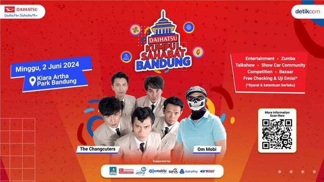 Buat kamu yang berdomisili sekitaran Bandung, khususnya pecinta otomotif, lagi bingung cari hiburan di akhir pekan mau ke mana? Yuk mampir ke event Daihatsu Kumpul Sahabat. Nggak cuma memamerkan motor, dan mobil dari komunitas Daihatsu, acara ini juga dimeriahkan The Changcuters, hingga kompetisi berhadiah uang jutaan rupiah.