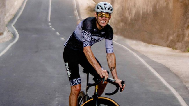 Aleix Espargaro menghabiskan waktu liburan di Bali sambil bersepeda. Kali ini dia berpose di jalan menuju Pantai Pandawa yang diapit bukit kapur. Foto: (Instagram/@aleixespargaro)
